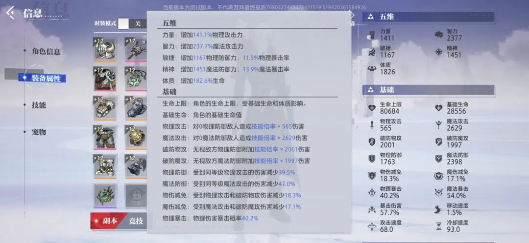 基础属性:生命上限/基础生命/物理攻击/魔法攻击/破防物攻/破防魔攻/物理防御/魔法防御/物伤减免/魔伤减免/物理暴击/魔法暴击/暴击伤害/移动速度/攻击速度/冷却速度/各种元素强化与抗性