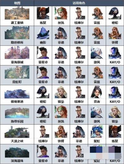 以上就是小编整理带来的无畏契约各地图角色推荐,更多相关游戏攻略,请关注手游网!