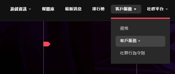 2、在无畏契约页面点击顶部的【客服服务】,紧接着点击下拉【客服服务】。