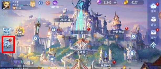 1、首先我们进入到游戏页面,进入之后就可以看到左侧的【活动】按钮,点击进入即可。