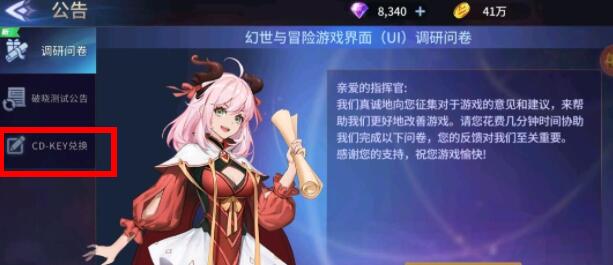 3、接着我们就在公告页面可以看到【CD-KEY兑换】,点击进入到兑换页面即可。