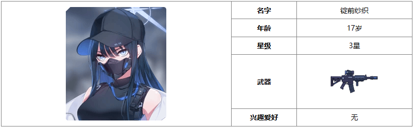 以上就是小编整理带来的《蔚蓝档案》锭前纱织角色介绍一览攻略,更多相关游戏攻略,请关注手游网!