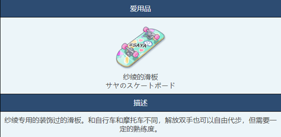 以上就是小编整理带来的《蔚蓝档案》纱绫的滑板物品图鉴介绍一览攻略,更多相关游戏攻略,请关注手游网!