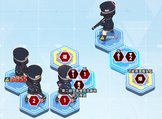 3、4回合内完成关卡。