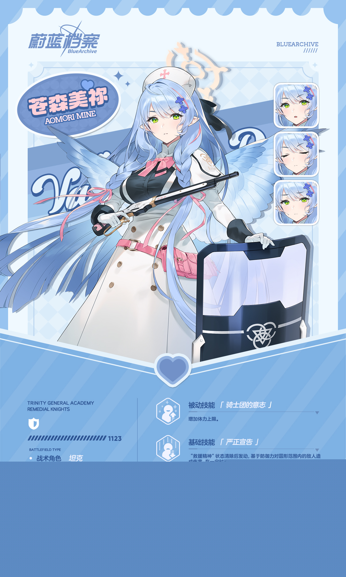 苍森美祢是《蔚蓝档案》中的学生,隶属于崔尼蒂综合学院(圣三一)的救护骑士团。今天给大家带来了《蔚蓝档案》苍森美祢档案图鉴分享,大家想要了解该角色的可以来看看哦!