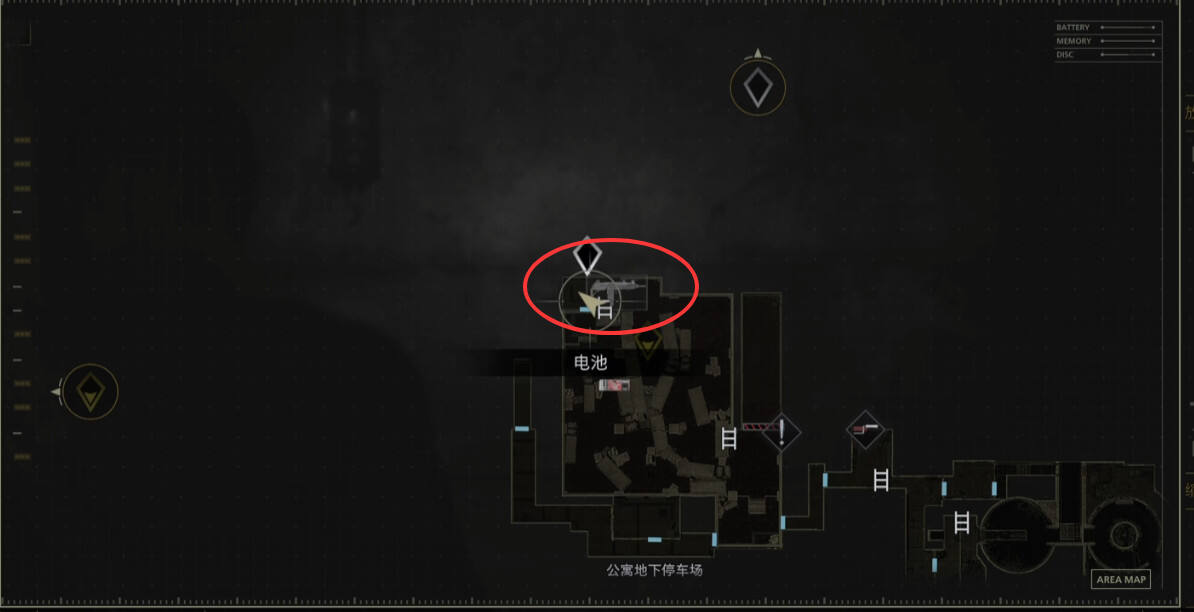 具体位置:地下停车场西北角。在寻找“电池”钥匙任务道具的地下停车场,该区域有积水。向停车场的西北角探索,这把枪就放在角落的地面或箱子上。