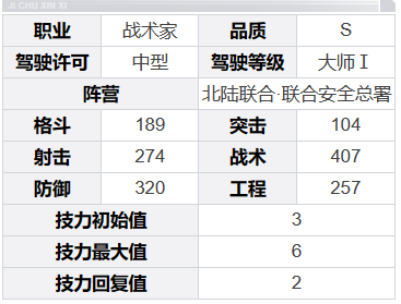 等级1:每回合首次使用战术武器攻击后可发动[再攻击],攻击前无法移动,最终伤害减少30%,每回合最多触发1次
