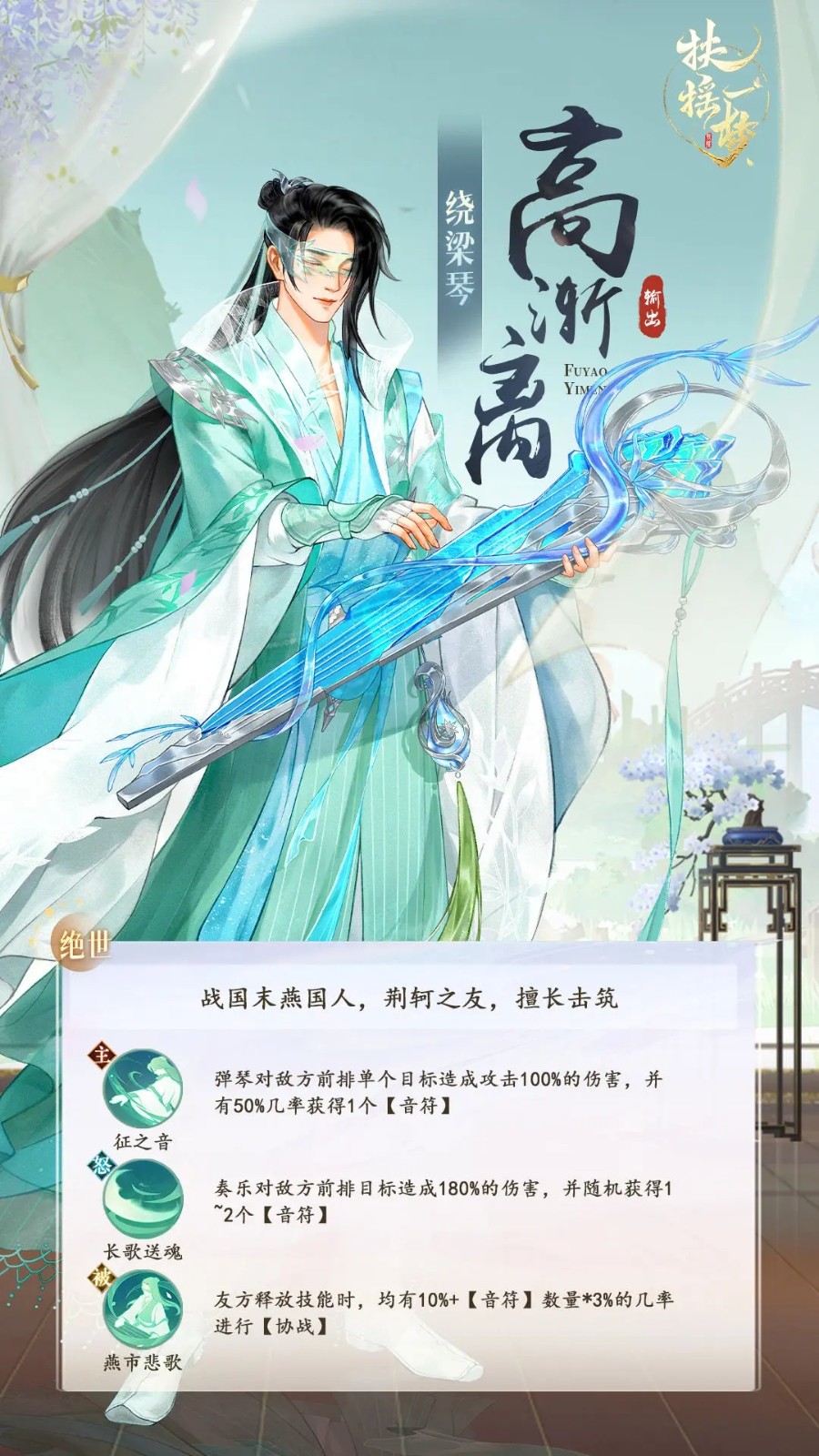 以上就是小编整理带来的扶摇一梦高渐离怎么样?高渐离门客图鉴介绍,更多攻略内容,请点击关注易采游戏网!
