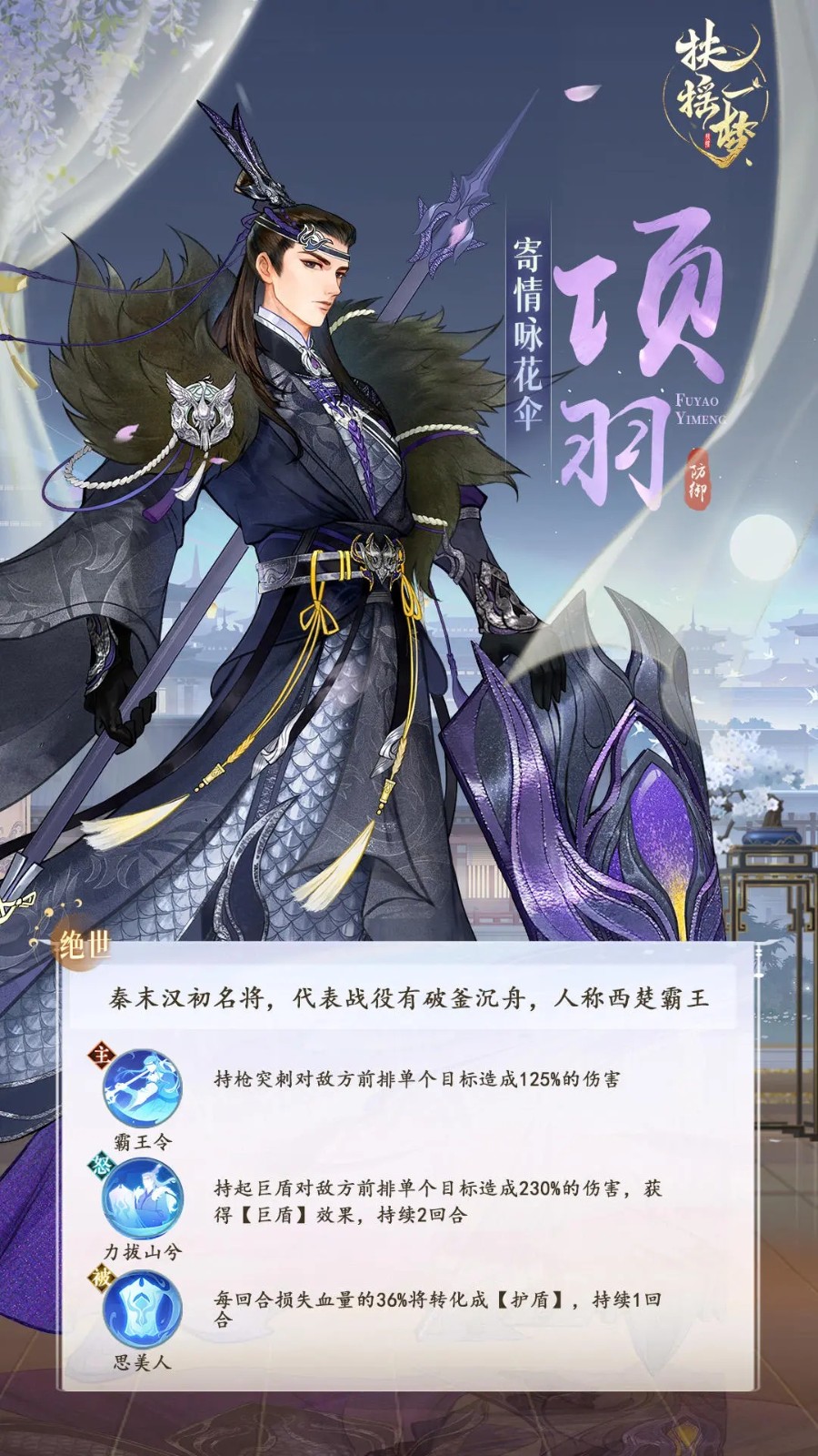 以上就是小编整理带来的扶摇一梦项羽怎么样?项羽门客图鉴介绍,更多攻略内容,请点击关注易采游戏网!