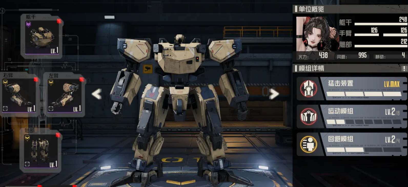 模组搭配:猛击装置、运动模组、回避模组。强化暴击的同时还可以提升快移速突击能力。
