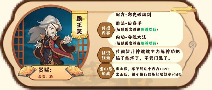 以上就是小编整理带来的《我要当掌门》客卿颜王笑图鉴分享,更多精彩内容,请点击关注手游网!