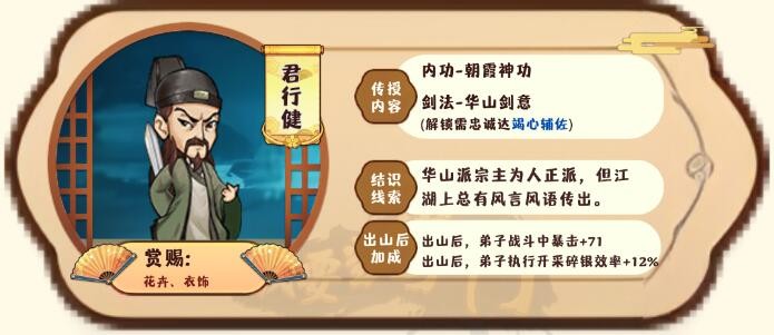 以上就是小编整理带来的《我要当掌门》客卿君行健图鉴分享,更多精彩内容,请点击关注手游网!