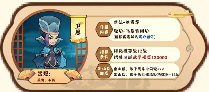 以上就是小编整理带来的《我要当掌门》客卿卫恩图鉴分享,更多精彩内容,请点击关注手游网!