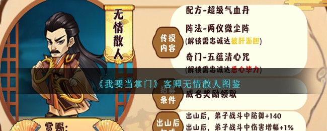 以上就是小编整理带来的《我要当掌门》客卿无情散人图鉴分享,更多精彩内容,请点击关注手游网!