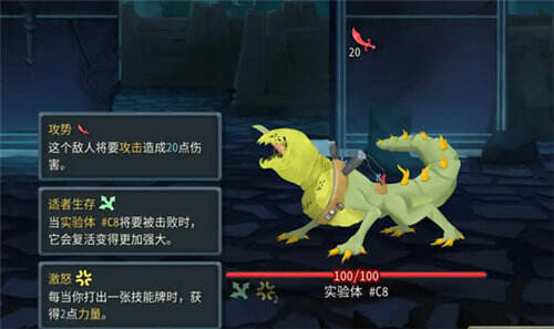 三头形态的实验体拥有"无实体"(Intangible)能力——每两个回合获得1层,使所有受到的伤害和生命损失降低至1点 。同时,它的攻击力极高,且会随着战斗进行不断自我强化。