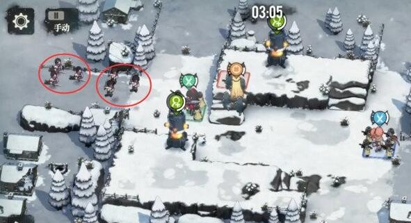 在我们呢和第一波并交火时,此时上方会偷偷出来三个小兵并迅速上到右方阶梯,我们需要将一队斗士转移回来并结合射手的火力消灭这队小兵。