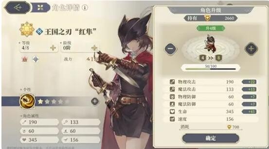 角色升级,使用经验资源可以提升角色等级,升级提升角色属性。