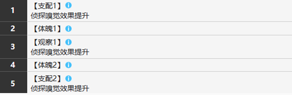 1、支配1:调查员与小队暴击+10,穿透+5,侦探嗅觉效果提升。