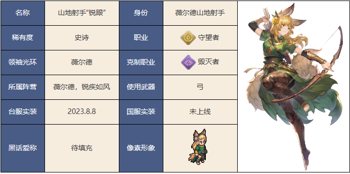 以上就是小编整理带来的《铃兰之剑为这和平的世界》薇尔德山地射手角色介绍一览攻略,更多相关游戏攻略,请关注手游网!