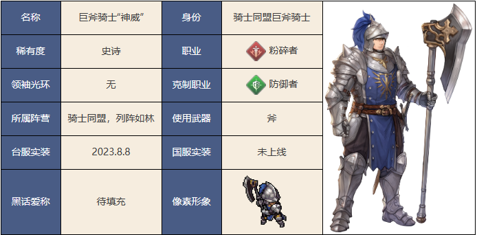 以上就是小编整理带来的《铃兰之剑为这和平的世界》巨斧骑士神威角色介绍一览攻略,更多相关游戏攻略,请关注手游网!