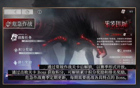 3、危急作战赛季定期更新,每期需要挑战各具特点的Boss。