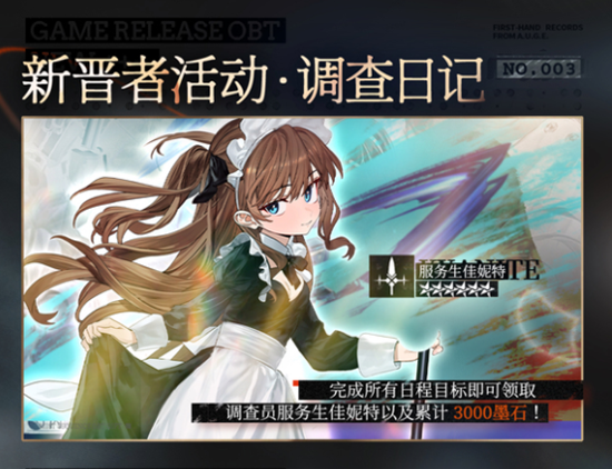 2、奖励包括调查员服务生佳妮特以及累计3000墨石。