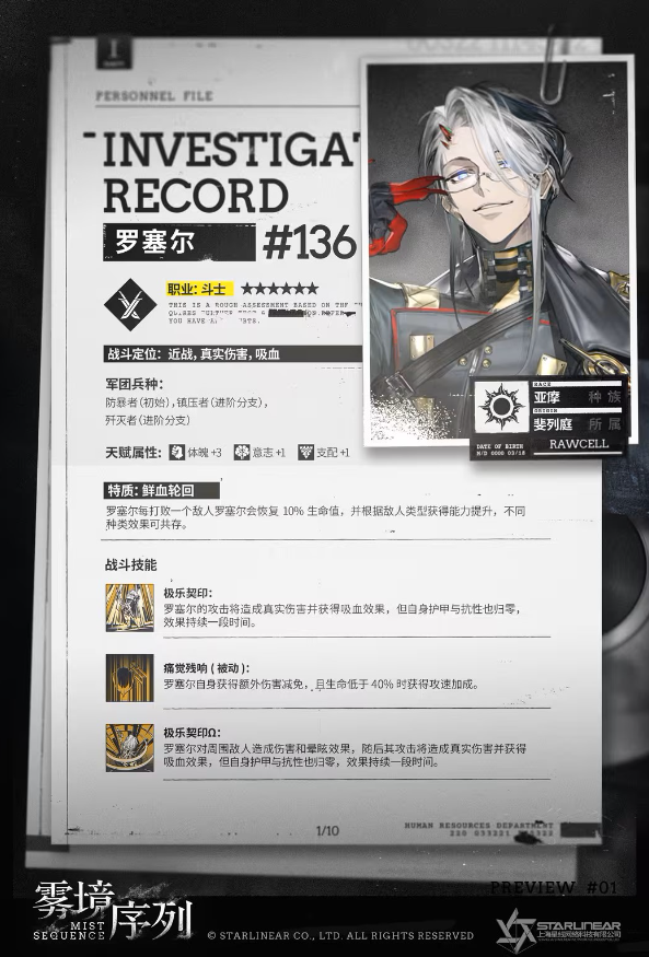 在《雾境序列》这款游戏中有着许多的角色,罗塞尔就是其中之一,“罗塞尔”职业是斗士,属于斐列庭帝国,那么雾境序列罗塞尔技能怎么样?接下来就由小编给大家带来了详细的《雾境序列》罗塞尔技能攻略,希望能给大家带来帮助。