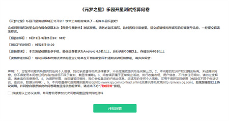 2、进入界面中填写问卷即可有概率获得内测资格