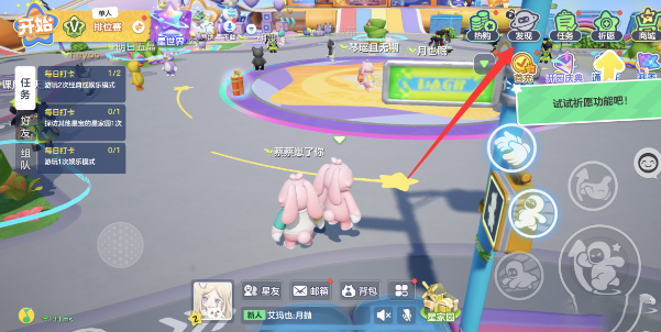 1、进入游戏升级到3级,在首页面会看到一个发现功能,点击进入。