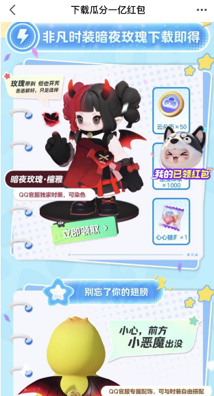 1、进行游戏的下载,接着就会跳转到下图的下载福利页面中,之后向下滑就能够找到领取“暗夜玫瑰”的地方。