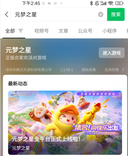 1、玩家进入到游戏中之后,在这里直接搜索【元梦之星】。