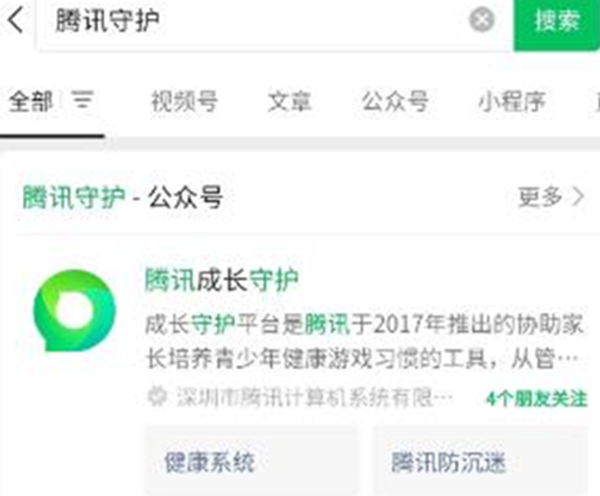 2、认证之后的玩家,可以前往微信搜索腾讯守护公众号。