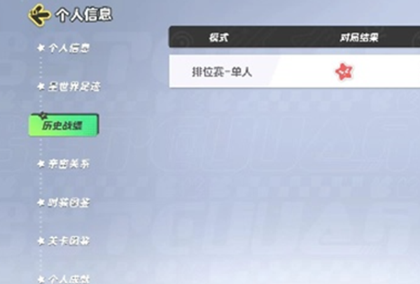 2、在左侧的位置处找到历史战绩进入。