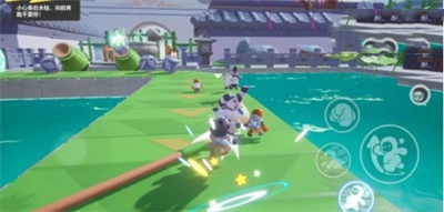 3、当喷泉开始喷射强力水柱时,需冲出赛道速跑,避开攻击。