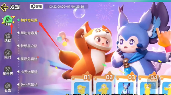 2、进入庆典找到活动和梦奇玩耍。