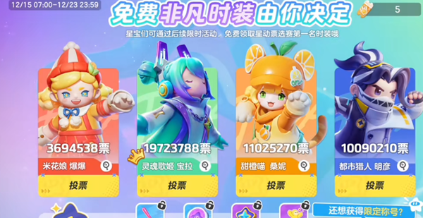 5、活动非凡时装投票也能够拿到6枚心愿币,只需要投票即可。