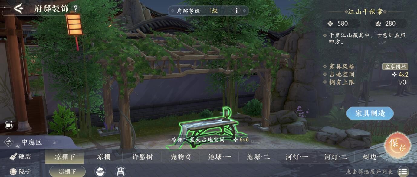 3、现有的家具很少需要玩家在大地图中进行“家具抄录”、异闻录、府邸商店等获取图纸然后进行制造,制造完成之后即可在府邸中装饰;