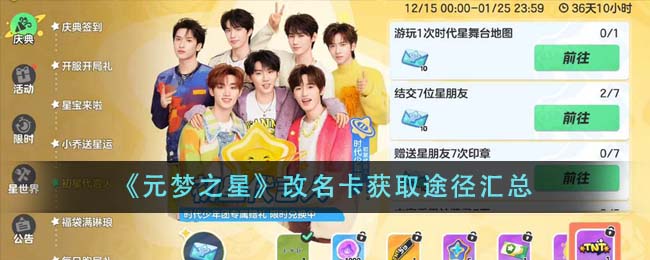 以上就是小编整理带来的元梦之星改名卡获取途径汇总,更多相关游戏攻略,请关注易采游戏网!