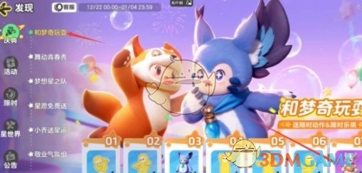 3、入口:主界面右上角发现-庆典-和梦奇玩耍。