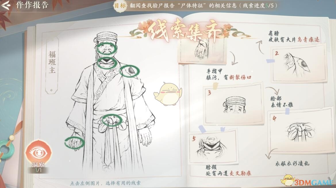 福班主仵作报告攻略如下(跳过了自动指南部分):