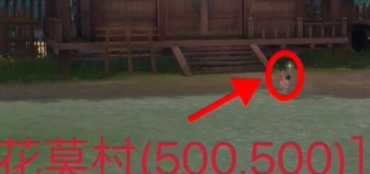 2、门口右转然后一直走发现茅屋门口的坐标(500,500)就可以发现一只。