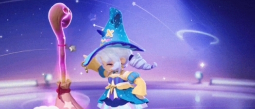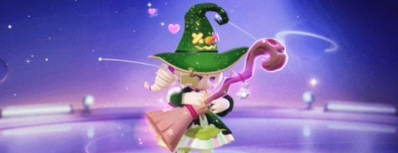 3、待机动画:糖果女巫召唤出魔法扫帚,并将扫帚抱在怀中,头上会不断冒出小爱心。