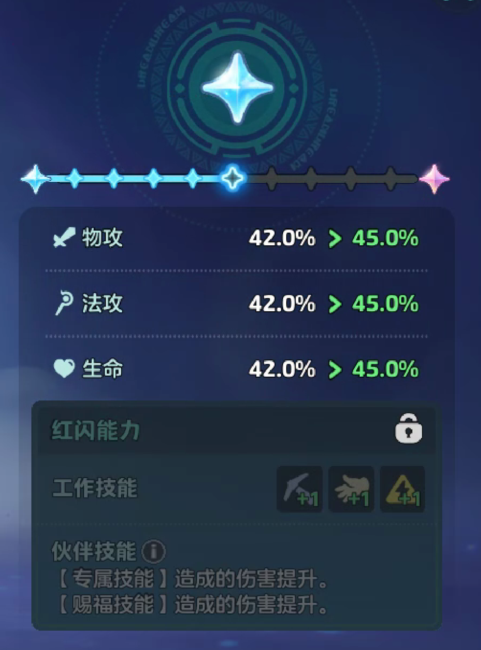 啾灵消耗了足够的原初赤核成为红闪啾灵后,还会解锁额外的工作技能加成和额外技能属性增益。