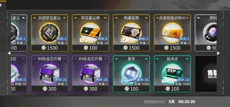 首先进行兑换构建蓝图和微晶,再兑换缺的战利物资。