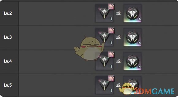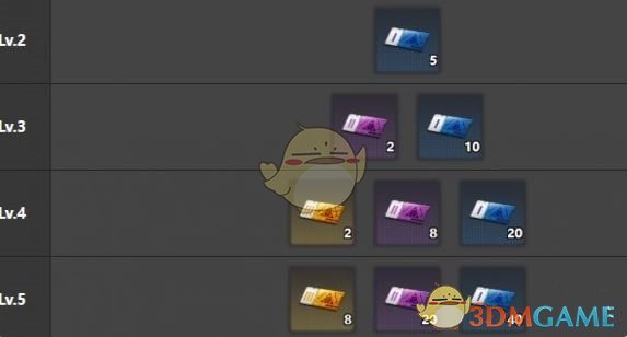 4、Lv.5:武装技能训练Ⅲ×8、武装技能训练Ⅱ×20、武装技能训练Ⅰ×40