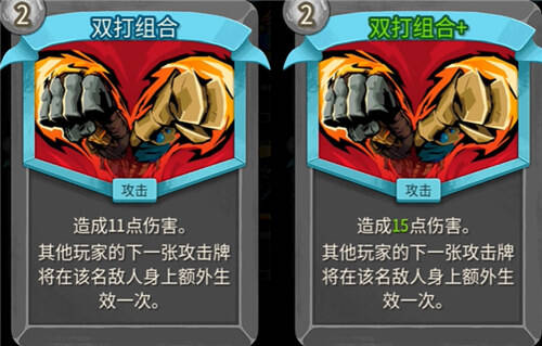 “双打组合”通常是一张稀有攻击牌(具体职业可能略有差异,多见于战士或新角色“协同者”),费用一般为2点。它的效果描述大概是这样的: