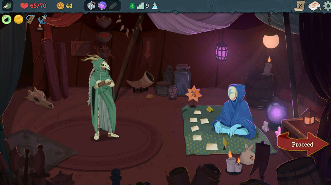 如“肮脏地毯”(加入无色牌)、“忍术卷轴”(加入小刀),这些遗物看似免费给牌,实则让卡组变臃肿。