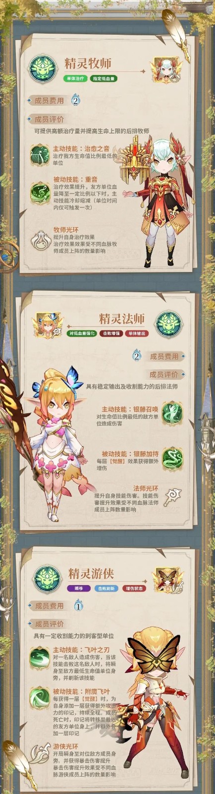 目前精灵成员有三名,分别是精灵牧师、精灵法师和精灵游侠,下方是三个成员的评价及技能分享: