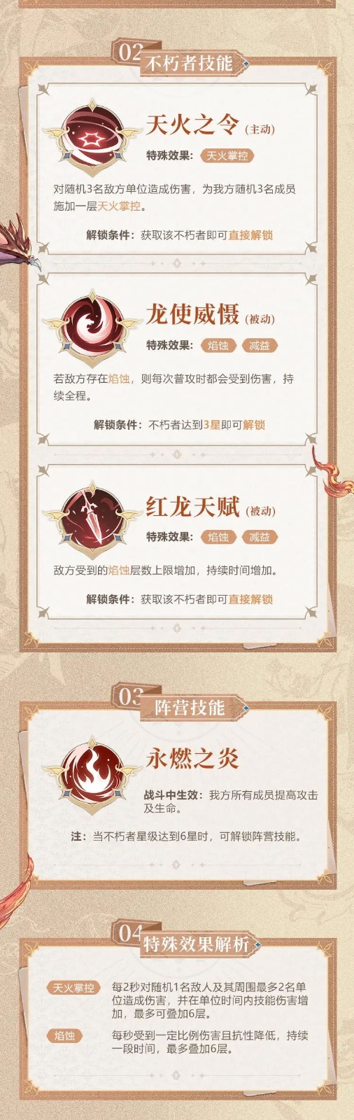 焰蚀:每秒受到一定比例伤害且抗性降低,持续段时间,最多叠加6层。