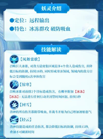 凌波仙子洛神是一个远程输出,特色是冰冻群攻,破防吸血。下面是小编给大家带来的《天境传说》洛神角色图鉴,感兴趣的小伙伴们一起来看看吧。